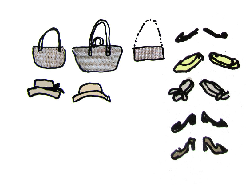Suosittelen kylläå piirtämistä, vaikka hyvinkin luonnosmaisesti. Itse piirrän aina kun suunnittelen vaatevarastoa, yläosat ja alaosat kahteen eri riviin ja sitten viivoilla yhdistän yhteensopivat. Niin joukosta voi poimia ne, joille ilmenee vähiten käyttöä.